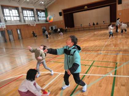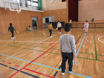 友達と羽つきや紙風船など体育館で楽しく活動できました。
