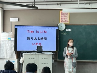身体計測前にしている保健指導では『Time is Life』というテーマで「いのちとはあなたに残された時間、自分時間で物事を考え、自分らしく生きていこう」という話をしました。少しでも心に残ってくれたらうれしいです。