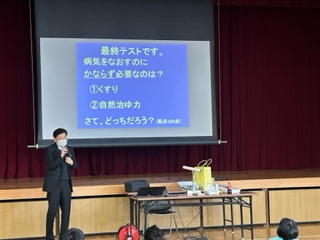 最後に、「薬というのは、病気を治すのを助けてはくれるけれど、体を治すのは自分の力だよ」と自然治癒力を高めくこと、そのためには規則正しい生活が一番大切だということを教えていただきました。
