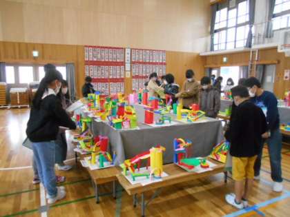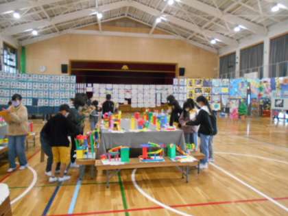 体育館では図工展が開催されています。素敵な作品がずらりとならんだ素敵な空間になっています。せっかくの機会なので、45分間じっくりといろいろな作品を鑑賞しました。