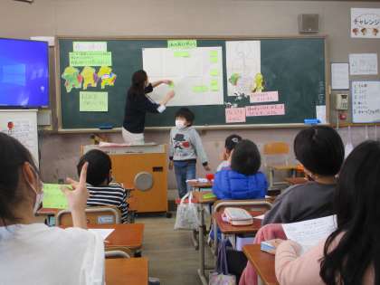栄養教諭の有田先生から、野菜の働きについて教えていただきました。