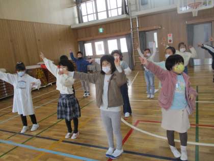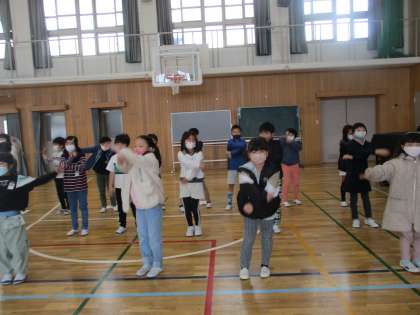 本番の6年生を送る会に向けて、学年で集まって練習しました。