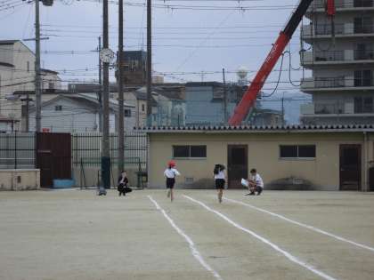 4ねんのたいいくは 50めーとるそうを しました。