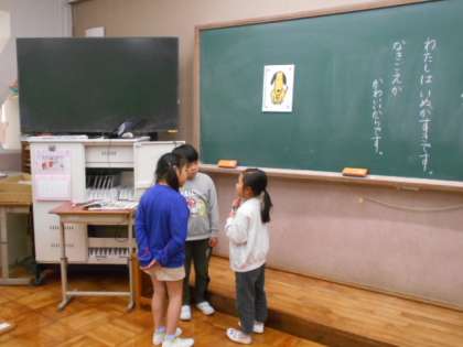 好きな動物は何かな。「わたしは〜がすきです。」「大きくてかっこいいからです。」と、好きな動物と好きな理由を、グループに分かれて友達と話しました。