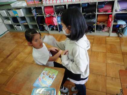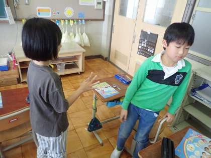 今日は、helloといいながら友だちと交流しました。