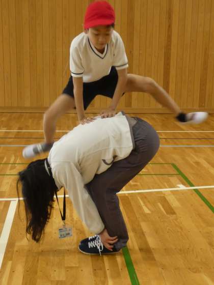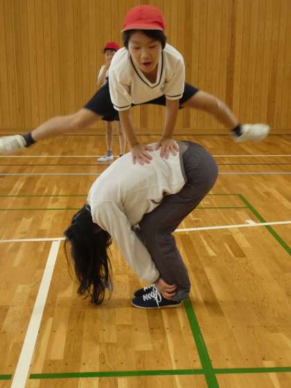 馬とびや背中合わせで立つ運動をしたりしました。