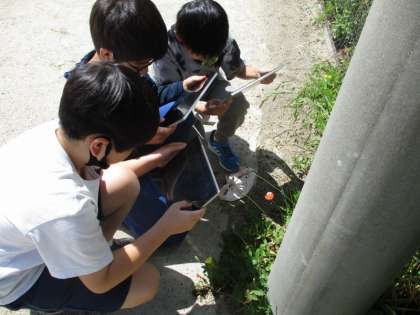 4月の頃から生き物の様子はどう変わったのか、校庭で生き物を見つけて観察をしました。