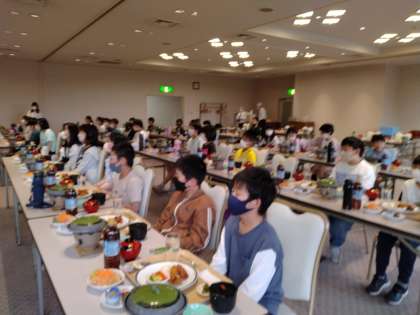 豪華な夕食を美味しくいただきました。ご飯をたくさんおかわりしている人もいました。全員元気です。