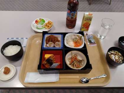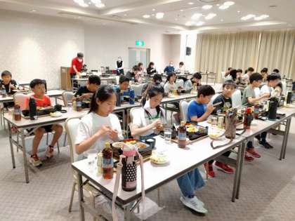 今日の活動に備えて朝食をしっかりいただきました。卵焼きや焼き魚、きんぴらゴボウなど美味しかったです。あさから、デザートもありました。