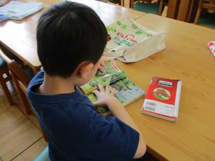 「今週はどの本を借りようかな。」わくわくしながら本を選びました。