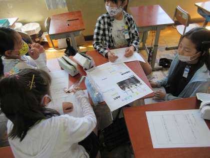 学年での交流に向けて、係活動で報告する内容をグループで交流しながら進めました!