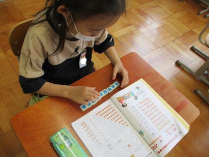 数図ブロックを使って学習しています。ブロックの操作にも少しずつ慣れてきました。