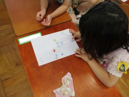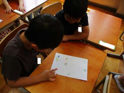 今日の「いくつといくつ」は、おはじきゲームをしながら学習しました。