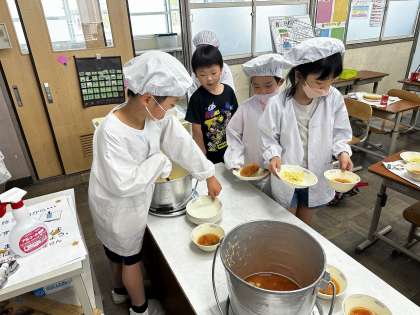 2年生になり、1か月半。給食当番がとっても上手になってきました。