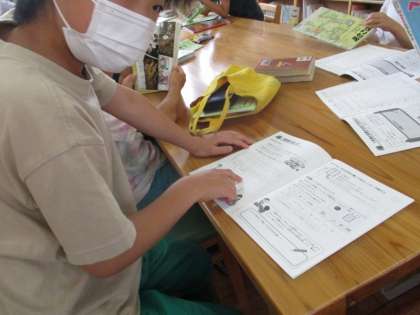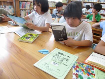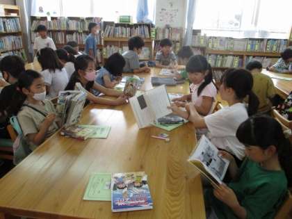 今年度から返す本は自分たちで書庫へと戻すため、分類番号を見ながらそれぞれきちんと戻していました。本を探すときには、検索用パソコンと分類番号を駆使して探している姿に、「さすが4年生だな」と感心させられました。。