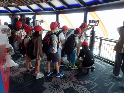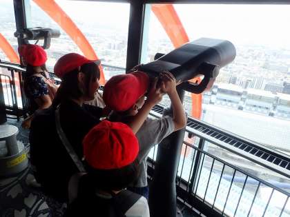 大階段を上ったり京都タワーから京都を見たりしました。