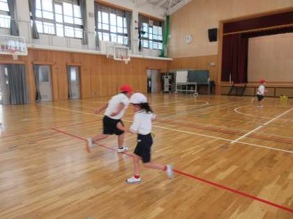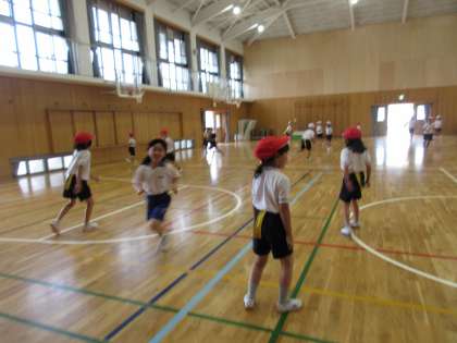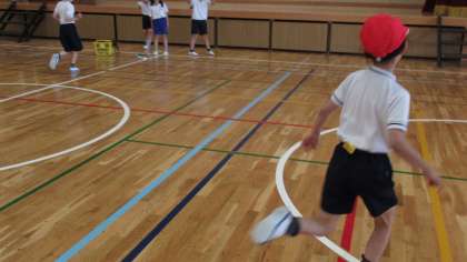 昨日は天候が悪かったため、体育館でしっぽとりをしました。しっぽを取るためのコツ、とられないようにするコツをみんなで考え、一生懸命からだを動かしていました。