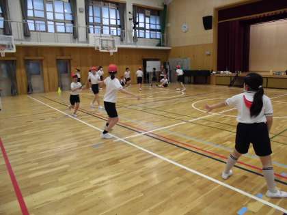 練習の成果を運動場で発揮できるようにチームで相談しながら練習しました。