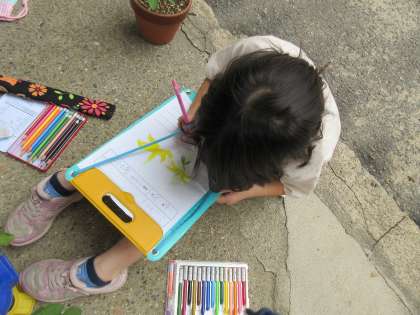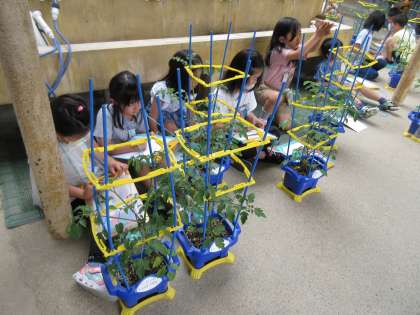 かわいらしい黄色の花が咲きました。子どもたちはじっくり観察していました。