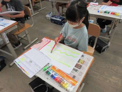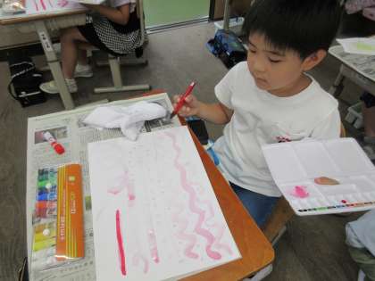 少し前ですが2組でも初めての絵の具の学習をしました。