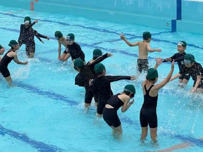 少しずつ慣れていきました。そして水の掛け合い!