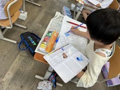 今日はあじさいの花に色を付けました。初めて色を混ぜてみました。