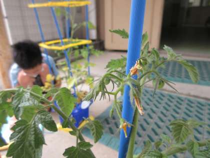 どんどん実が増えています。連なっている実を見て「いっぱいできてきたなあ」と笑顔があふれる子どもたちでした。