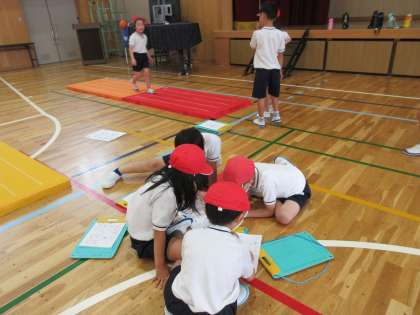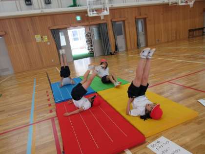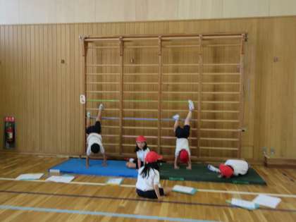 壁倒立も一段ずつ上に登っていきました。友達同士で声を掛け合いながら協力して楽しみました。