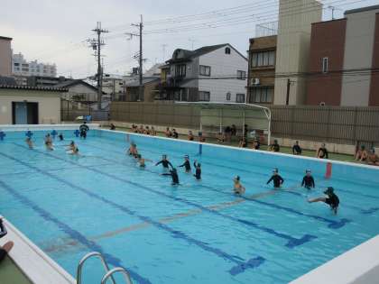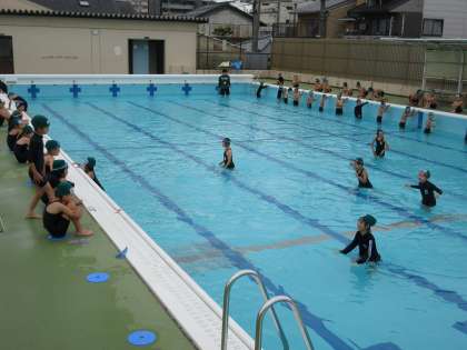 今日から少し水深が深くなりました。その分頭まで水に入る練習ができました。
