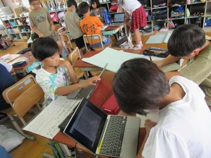 新聞を作るために,グループに分かれて工夫しながら