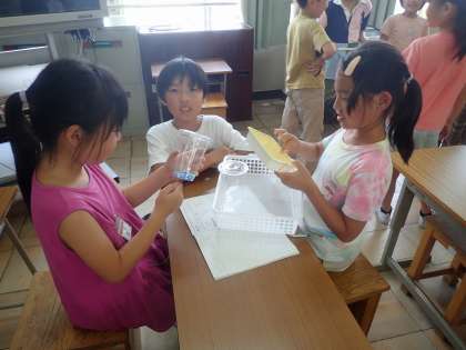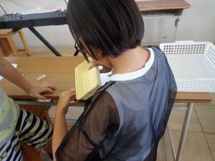 太鼓や輪ゴム、糸、ビーズを使って行ないました。
