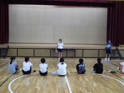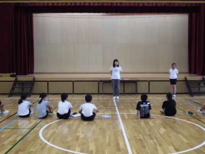 休み時間に、リーダーの人たちが集まり、入所式などの式や朝の集いの練習をしていました。