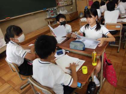 さすが5年生。司会者は全員が発言できるように気を配ったり、丁寧な言葉づかいで話したりしていました。