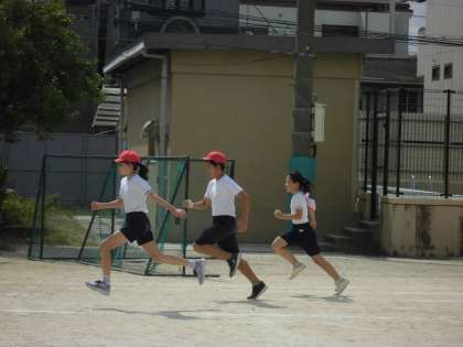 運動会に向けて、100m走の練習をしました。