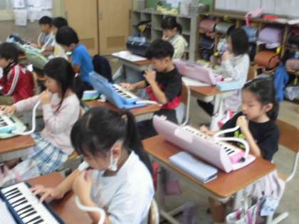 鍵盤ハーモニカ練習では、