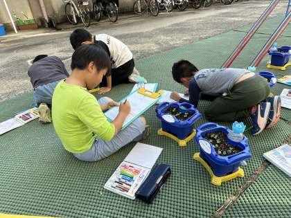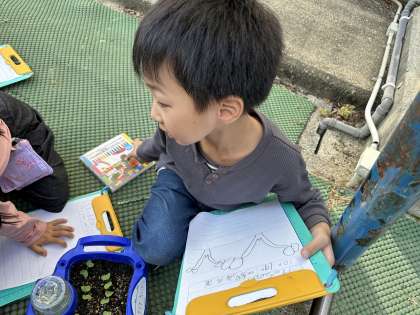 かわいらしい芽を一生懸命観察していました。