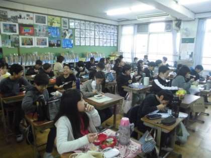 給食ではなく美味しくお弁当をいただきました。