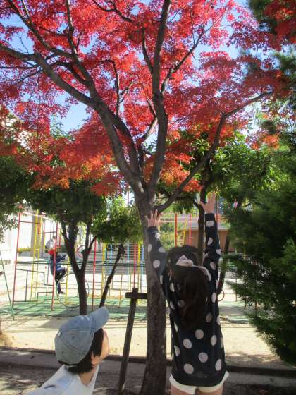 いま、しゅはちこうの こうていの もみじが とても うつくしいです。