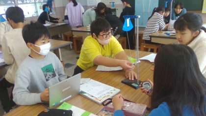 理科の学習で、振り子を使った実験をしています。