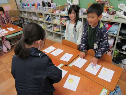 「いらっしゃいませ!」「トマトを一つください。」「ありがとうございました。」など、言葉に気を付けながらお店屋さんごっこをすることができました。