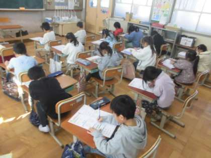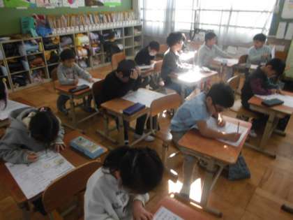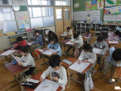 算数です。まとめのプリントをがんばりました。