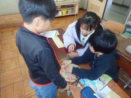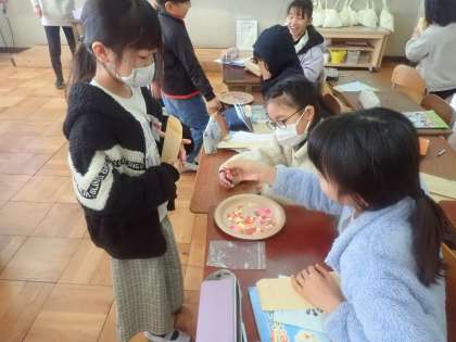 外国語活動では、カード作成に向けて