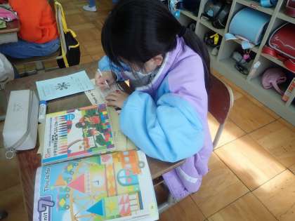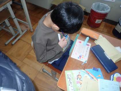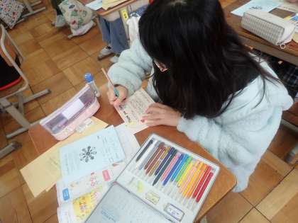 外国語活動では、2学期に集めた形を使って