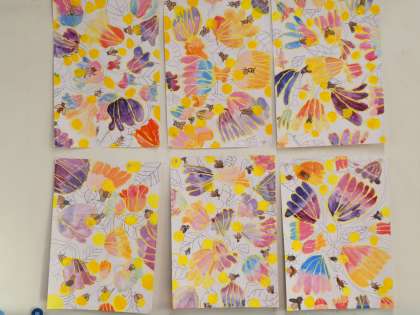 ホタルブクロの花を かいています (ひまわり学きゅう)