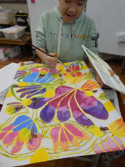 ホタルブクロのはっぱやくきを かきました  (ひまわり学きゅう)