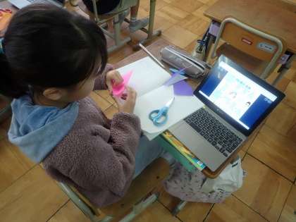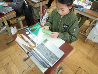 算数科では、折り紙を使って2つの三角形を作りました。