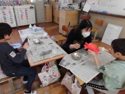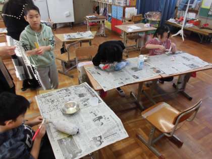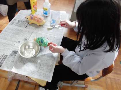 うみのいきものに ニスを ぬりました。