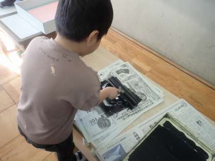 ローラーは重たかったですが、力を入れてやっています。