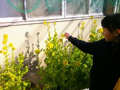 今年は暖冬…のようですが、校内を探検すると、冬らしい花が咲いていたり冷たい風が吹いてきたり、冬を感じることができました。