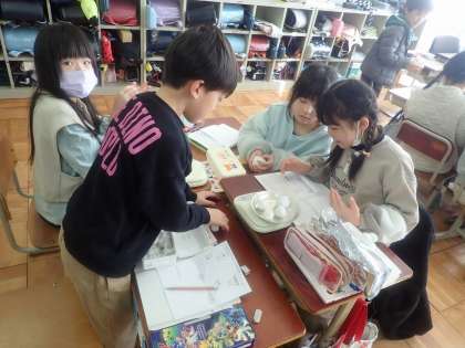理科では、形を変えると重さはどうなるのか実験をしました。
